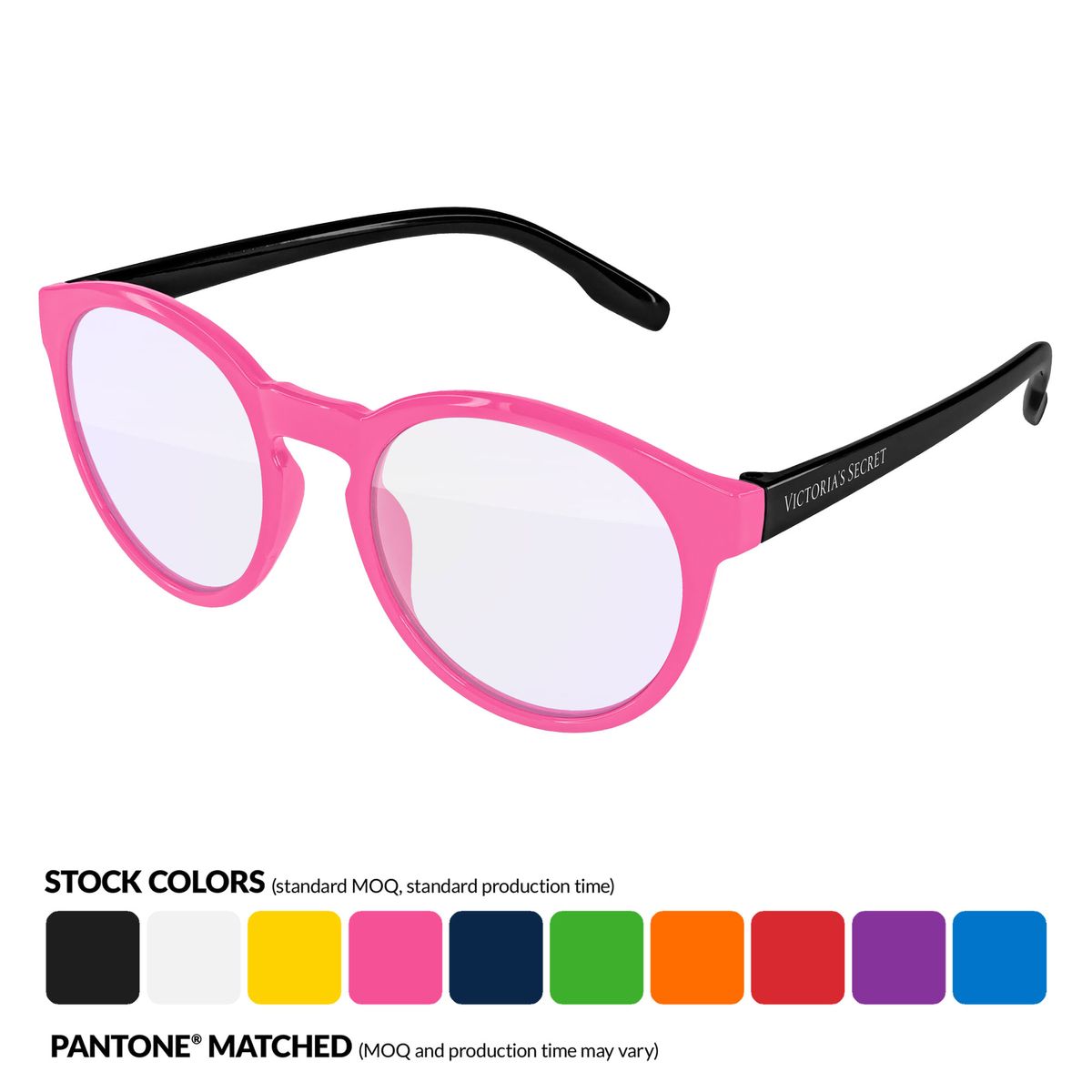 Block harmful blue light with these 100% recycled Vicky Sunglasses with 1-color arm imprint & blue light blocking lenses. This elegant frame features soft, round thin rims highlighted by a keyhole bridge that adds a twist to the design. These stylish shades are an excellent promo item for white label, giftshops, brand giveaways, in-store promos, & many more! 100% UVA/UVB impact-resistant FDA-approved polycarbonate lenses, quality polycarbonate frame. PMS Matching Frames Polycarbonate lenses provide 100% UV protection, clear or dark